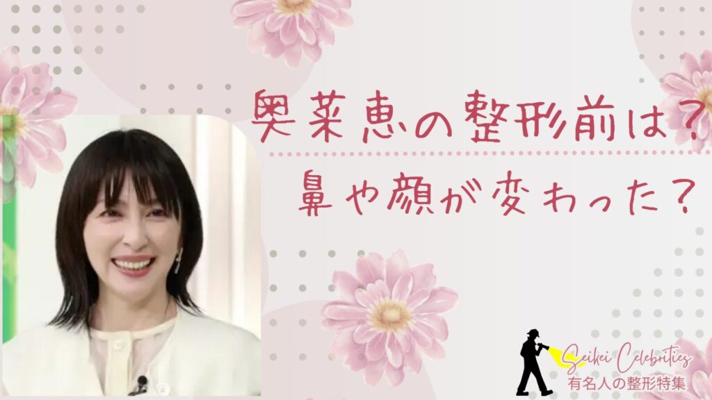 女優や歌手として活躍している奥菜恵さん。 そんな奥菜恵さんの整形前が気になる人が多いようです。 そこで今回は、奥菜恵さんの整形前とそもそも整形しているのか調べました。 鼻や顔が変わったと言われているようです! 奥菜恵のwikiプロフィール 名 前... -