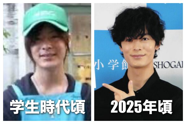 左が学生時代頃で、右が2025年頃の塩野瑛久さんです。
