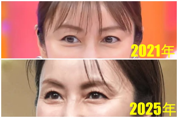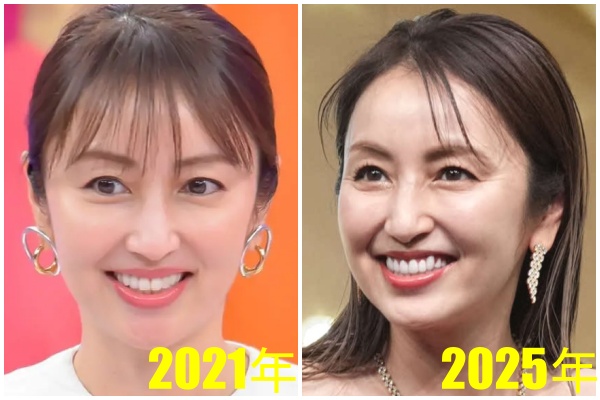 こちらは、左が2021年頃、右が2025年(現在)の矢田亜希子さんです。