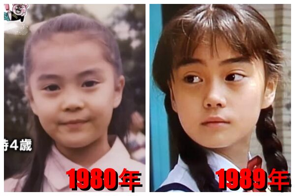 左が1980年の子役をしていた4歳頃で、右は1989年(13歳頃)の観月ありささんです。