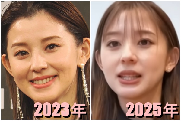 続いて、左が2023年(29歳)頃、右が2025年(32歳)の朝比奈彩さんです。