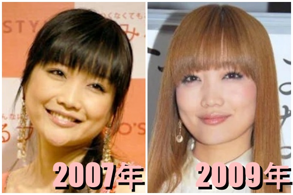 左が2007年(27歳)頃、右が2009年(29歳)頃の佐藤江梨子さんです。