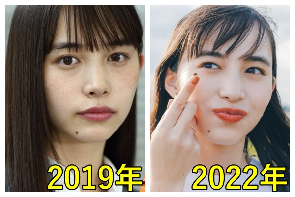左が『仮面ライダーゼロワン』が放送された2019年、右が『ベストスマイル・オブ・ザ・イヤー』に選ばれた2022年頃の井桁弘恵さんです。
