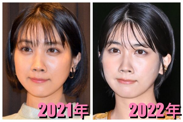 左が2021年(24歳)頃で、右が2022年(25歳)頃の松本穂香さんです。