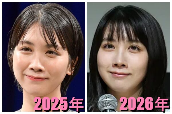 続いて、左が2025年(28歳)頃で、右が2026年(現在)の松本穂香さんです。