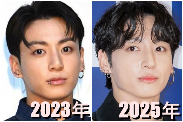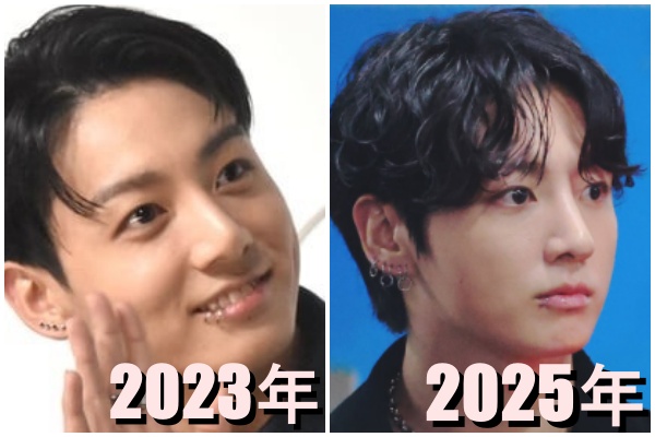 続いて左が2023年(26歳)頃、右が現在(28歳)のジョングクさんです。