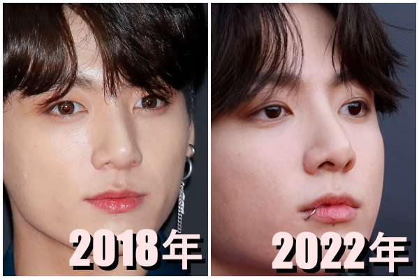 続いて左が2018年(21歳)頃、右が2022年(25歳)頃のジョングクさんです。