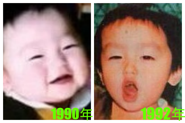 左が1990年のお座りが出来るようになった赤ちゃんの頃で、右が1992年の2歳頃の伊野尾慧さんです。