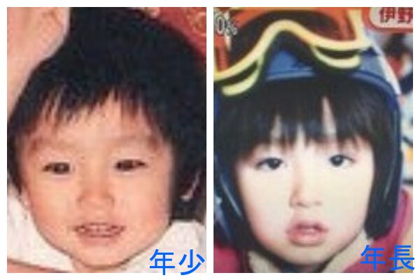 はっきりした年代の記載がなかったため年代が不明ですが、おそらく左が1993年の3歳頃で、右が1995年の5歳頃の伊野尾慧さんです。