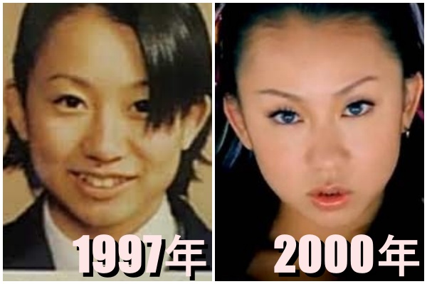 左が1997年(14歳)頃、右が2000年(17歳)頃の歌手デビューした倖田來未さんです。
