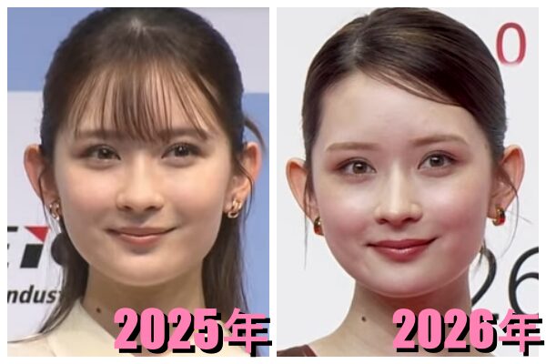 続いて、左が2025年(23歳)頃で、右が2026年(現在)の畑芽育さんです。