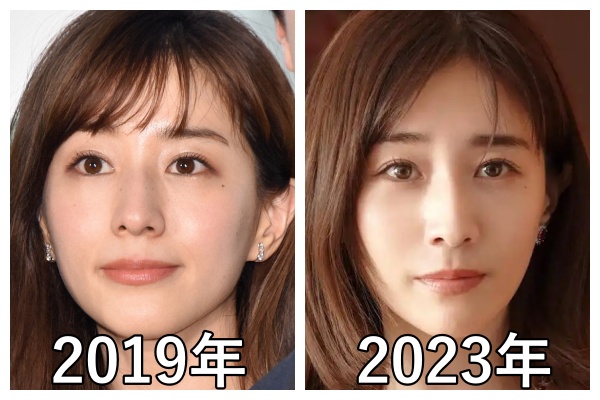続いて、2019年頃と2023年頃の田中みな実さんです。