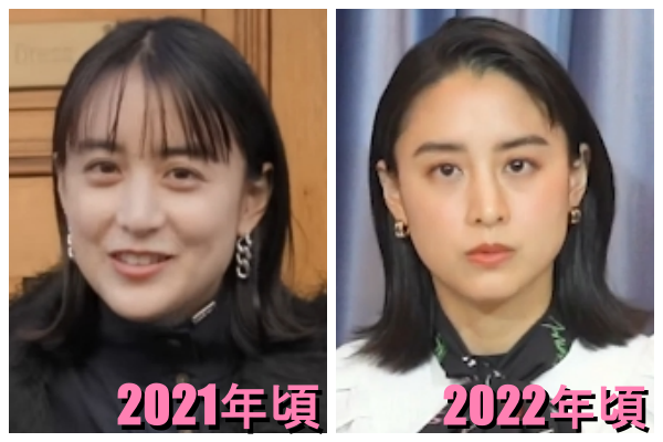 2021年頃は前髪ありでしたが、2022年頃は前髪なしの髪型になっています。