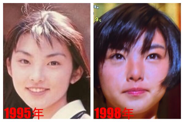 左が1995年の15歳頃で、右が1998年のなっちゃんのCMに出演した18歳頃の田中麗奈さんです。