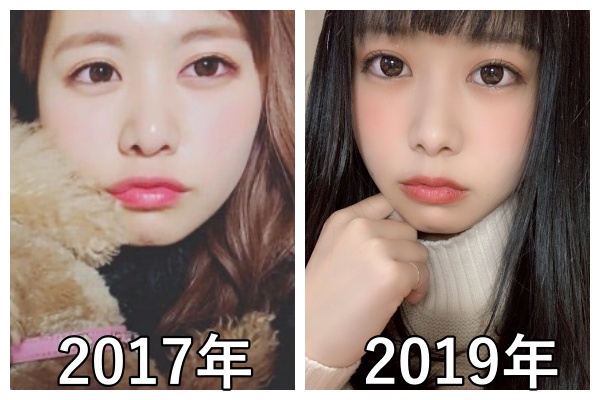 左が2017年頃(20歳)で、右が2019年(22歳)頃の仲川瑠夏さんです。