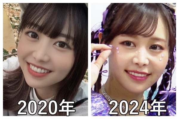 左が2020年頃(23歳)で、右が2024年頃(27歳)の仲川瑠夏さんです。