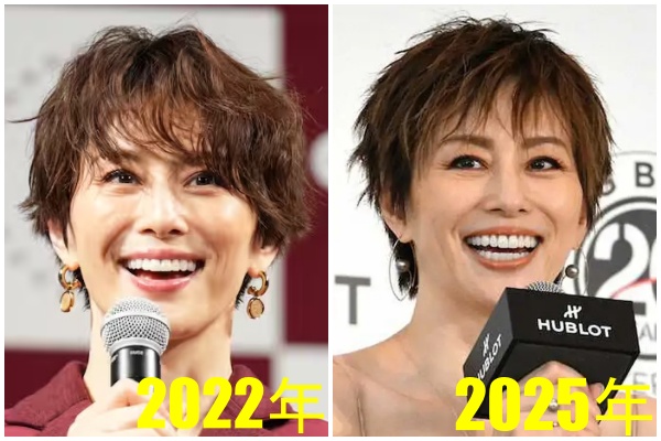 こちらは、左が2022年頃、右が2025年(現在)の米倉涼子さんです。