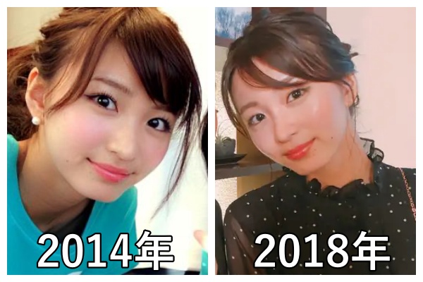 2014年頃はアイメイクがしっかりめですが、2018年頃はナチュラルな印象になり、大人っぽさが感じられます。