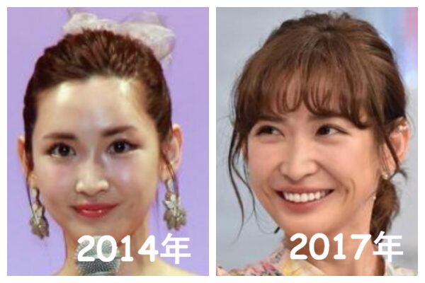 左が2014年(28歳)頃、右が2017年(31歳)頃の紗栄子さんです。