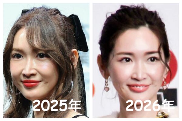 続いて、左が2025年の38歳頃、右が2026年の39歳の紗栄子さんです。