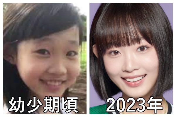 左が幼少期頃で、右は2023年頃の飯田栞月さんです。