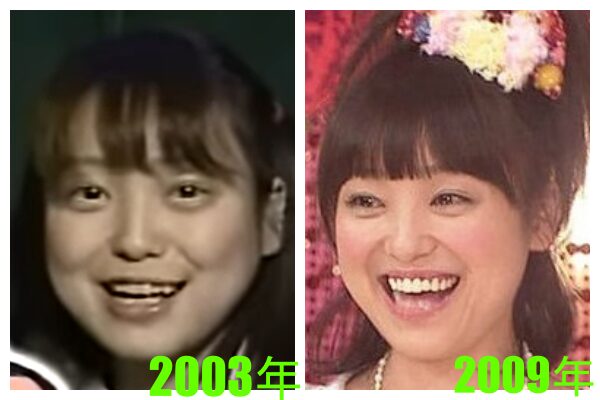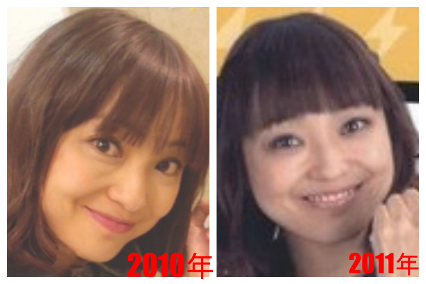 顔の表情やメイクは違いますが、目や鼻や口や輪郭の大きさや形に変化はなさそうに見えます。
