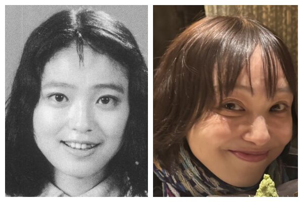 左は年代は不明ですがおそらく高校時代で、右が1996年の銀行員だった頃の23歳の金田朋子さんです。