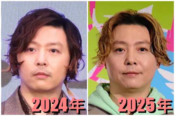 続いて、左が2024年(45歳)頃、右が2025年(46歳)の堂本剛さんです。