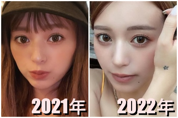 左が2021年(22歳)頃、右が2022年(23歳)頃のukaさんです。