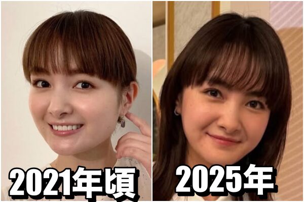 髪型の違いはありますが、2025年の方が若干フェイスラインがふっくらしているくらいで、年齢が変化しているとは思えないほど大きな変化は感じられません。