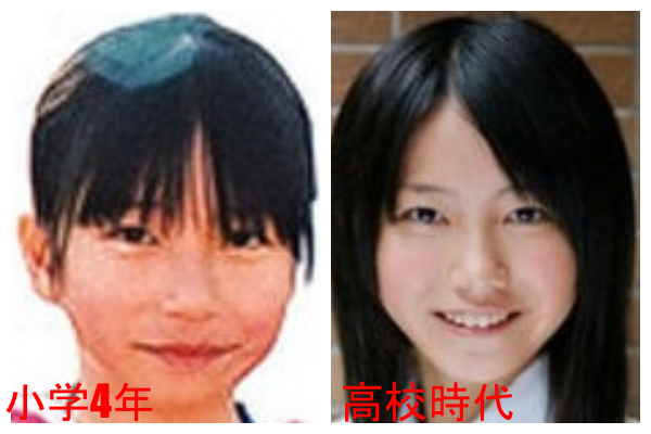 左が2002年の小学4年生の10歳頃で、右が高校生時代の横山由依さんです。