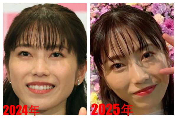 続いて、左が2024年の32歳頃で、右が2025年の33歳頃の横山由依のさんです。