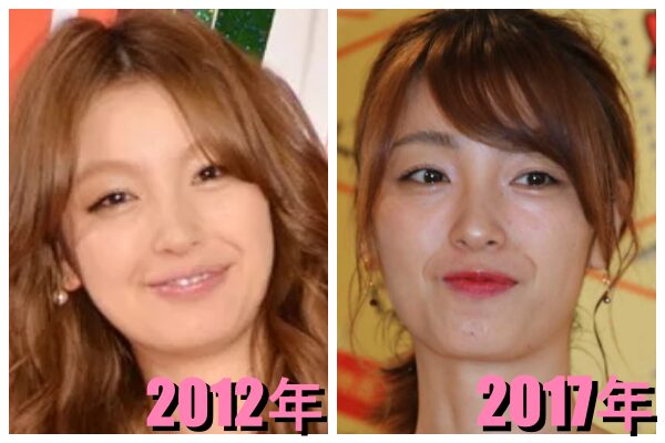左が2012年(25歳)頃、右が2017年(30歳)頃の木下優樹菜さんです。