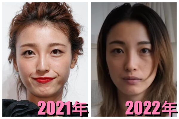 続いて、左が2021年(34歳)頃、右が2022年(35歳)頃の木下優樹菜さんです。