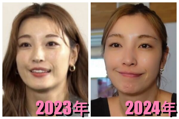 左が2023年(36歳)頃、右が2024年(37歳)頃の木下優樹菜さんです。