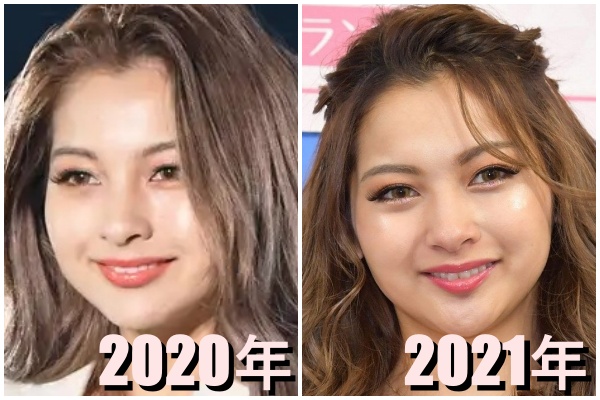 左が2020年(24歳)頃、右が2021年(25歳)頃のゆきぽよさんです。