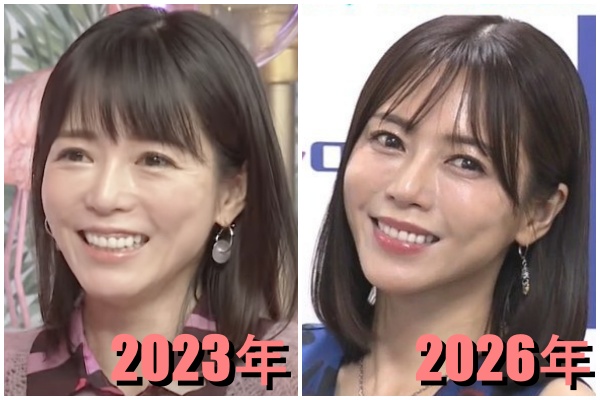 続いて、左が2023年(44歳)頃、右が現在(47歳)の釈由美子さんです。