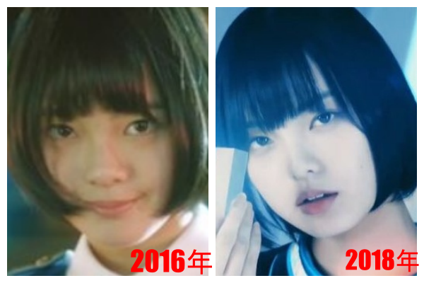 左が2016年の15歳頃で、右が2018年の17歳頃の平手友梨奈さんです。