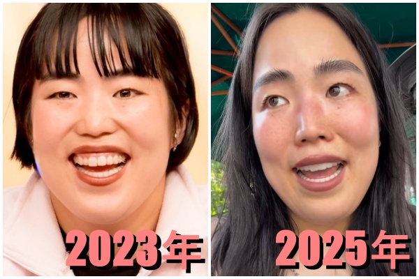 続いて、左が2023年(33歳)頃、右が2025年(35歳)のゆりやんさんです。